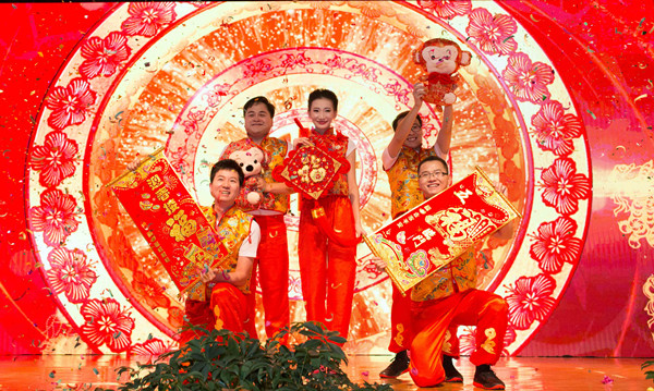 聯(lián)歡會(huì)在喜慶、熱鬧的舞蹈《扇舞吉祥》中拉開序幕,員工自編自演的舞蹈、情景劇、小品、合唱等文藝節(jié)目先后上演,流行與古典兼收,溫情與火熱并舉。其中,北京地區(qū)選送的《新版葫蘆娃》將大家的記憶帶回了童年美好時(shí)光;重慶創(chuàng)新業(yè)務(wù)部自編自演的《X計(jì)劃》將信托業(yè)務(wù)巧妙地貫穿到小品情節(jié)中,貼近工作,妙趣橫生;綜合辦公室的《四寶鬧新春》以三句半的形式對(duì)各部門2015年工作亮點(diǎn)進(jìn)行了點(diǎn)評(píng)與總結(jié),在歡慶的同時(shí)為員工鼓勁,引起現(xiàn)場(chǎng)觀眾的共鳴,掌聲連連;《國(guó)投戀》、《待別離---新春的眷戀》、《陜國(guó)投贊歌》等配樂朗誦流露著陜國(guó)投人對(duì)公司深深的眷戀和為之奮斗的豪情;共青團(tuán)選送的舞蹈《shake it》和《good boy》充分展示了青年員工青春洋溢,活力四射;公司領(lǐng)導(dǎo)和財(cái)富管理總部員工共同歌唱《共筑中國(guó)夢(mèng)》,把晚會(huì)的氣氛推向了高潮。最后,舞臺(tái)大屏幕上出現(xiàn)了各部門拜年的視頻,聯(lián)歡會(huì)在和諧熱烈的氣氛中落幕。