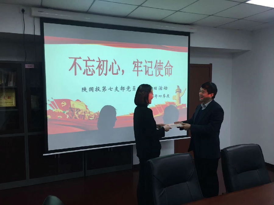 為認真貫徹落實習近平新時代中國特色社會主義思想和黨的十九大精神,深入推進全面從嚴治黨,進一步創(chuàng)新“三會一課”內容和形式,陜國投第七支部于2018年12月18日召開本年度第四季度黨支部大會,舉行“不忘初心,牢記使命”黨員政治生日主題黨日活動。公司副總裁王曉雁以普通黨員身份參加,公司黨委副書記何熙平同志、黨委工作部副部長周小茹同志參會指導。