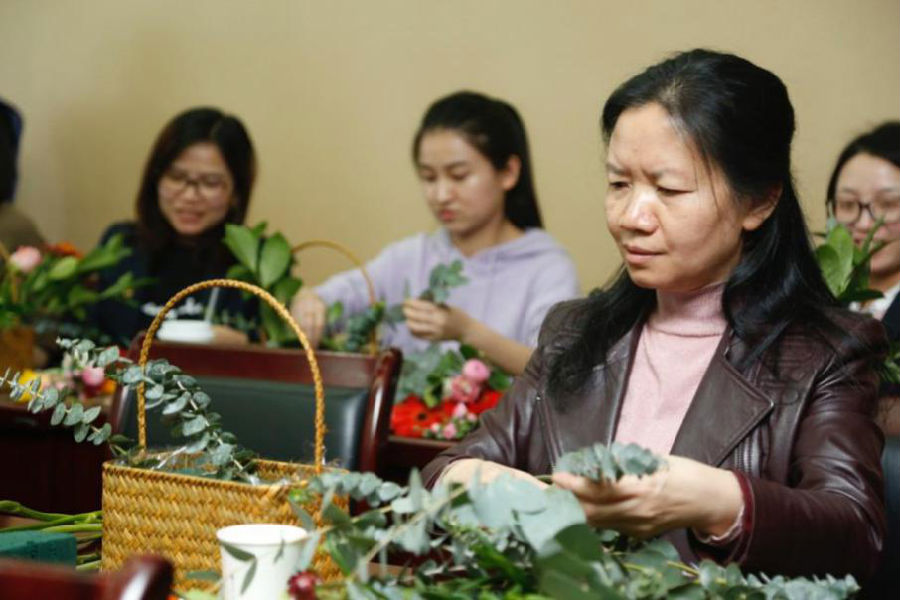 插花活動(dòng)開始,首先由花藝老師向大家詳細(xì)介紹了花意花語、鮮花保鮮等插花藝術(shù)方面的相關(guān)知識(shí)。接著由員工自己動(dòng)手制作花籃,大家精心構(gòu)思、大膽創(chuàng)作,色彩各異的鮮花經(jīng)過女員工們的巧手創(chuàng)作變成一只只色彩繽紛、造型各異的美麗花籃。愉快的插花環(huán)節(jié)過后,女員工們對(duì)創(chuàng)作的作品進(jìn)行了評(píng)比。這次活動(dòng),不但讓女員工們的藝術(shù)鑒賞能力有所提升,同時(shí)也陶冶了女員工們的情操,更進(jìn)一步激發(fā)了女員工們對(duì)美好生活的向往。