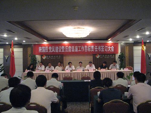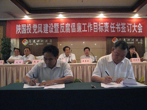 2007年8月24日下午,公司在高速神州酒店召開了陜國(guó)投黨風(fēng)建設(shè)暨反腐倡廉工作目標(biāo)責(zé)任書簽訂大會(huì)。