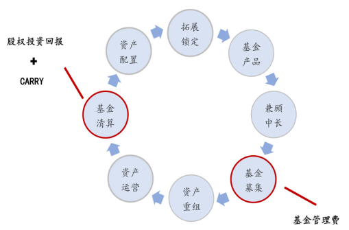 地產(chǎn)基金本質(zhì)上屬于資產(chǎn)管理行業(yè),因此其完整的價(jià)值鏈涵蓋募、投、管、退四個(gè)環(huán)節(jié)。