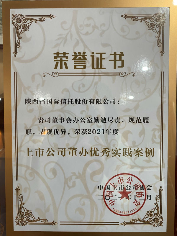 公司從參評(píng)的200多家中國上市公司協(xié)會(huì)職務(wù)會(huì)員單位中脫穎而出,榮獲“2021年度上市公司董辦優(yōu)秀實(shí)踐案例”,也是陜西本次入選的2家上市公司之一。