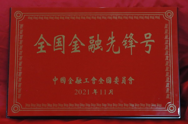 公司黨委副書記、總裁姚衛(wèi)東代表公司接受“全國金融先鋒號”榮譽(yù)獎(jiǎng)牌。