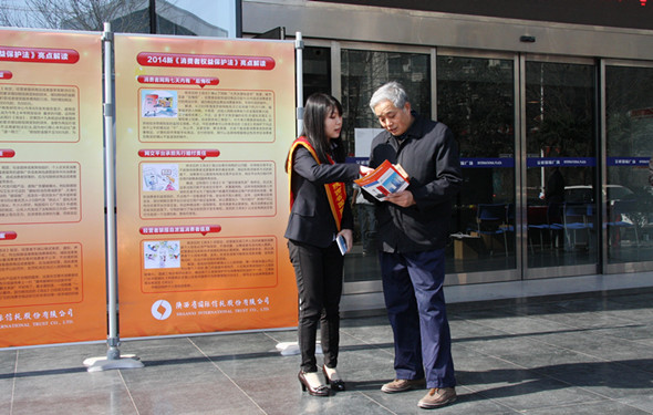 活動(dòng)現(xiàn)場(chǎng),公司設(shè)置了“金融消費(fèi)咨詢臺(tái)”,向群眾發(fā)放《新〈消費(fèi)者權(quán)益保護(hù)法〉亮點(diǎn)解讀》、《金融消費(fèi)者權(quán)益保護(hù)宣傳資料》等,工作人員耐心解答消費(fèi)者咨詢,結(jié)合信托特點(diǎn),以易懂易記、生動(dòng)活潑的形式向公眾普及金融知識(shí),引導(dǎo)消費(fèi)者科學(xué)選擇符合自身風(fēng)險(xiǎn)承受能力的信托產(chǎn)品,幫助消費(fèi)者提升保障財(cái)產(chǎn)安全的意識(shí)和能力。與此同時(shí),公司通過(guò)門楣?jié)L動(dòng)屏、電視顯示屏、設(shè)置立體展板等多種渠道,向廣大群眾宣傳金融消費(fèi)知識(shí),幫助樹(shù)立正確的信托投資理念,強(qiáng)化自我權(quán)益保護(hù)意識(shí),掌握自我權(quán)益保護(hù)方法,現(xiàn)場(chǎng)反響熱烈。